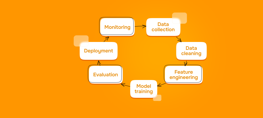 - Подготовка данных. Вместе с инженерами данных и аналитиками он собирает, очищает и проверяет данные, готовит признаки и следит, чтобы данные в обучении и продакшне были согласованы и не «ломались» со временем.